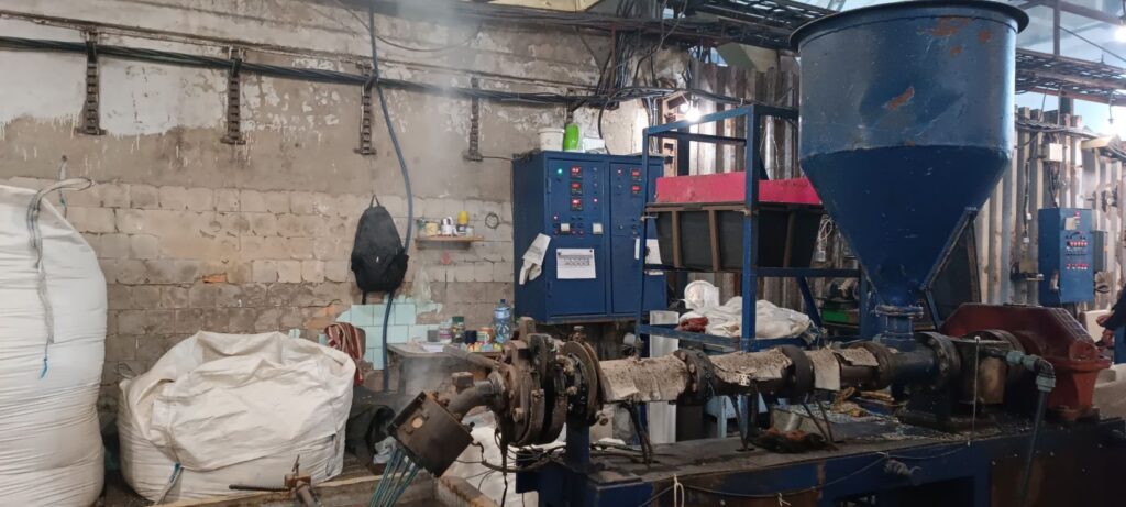 Загальна довжина шнека: 1835 мм L/D 22 (шнек: L = 1395 мм D = 63 мм) 5 зон нагріву Двигун: 13 кВт 2900 об/хв Ванна охолодження Потужність: 1.2-1.5 т/добу (залежить від сировини)
